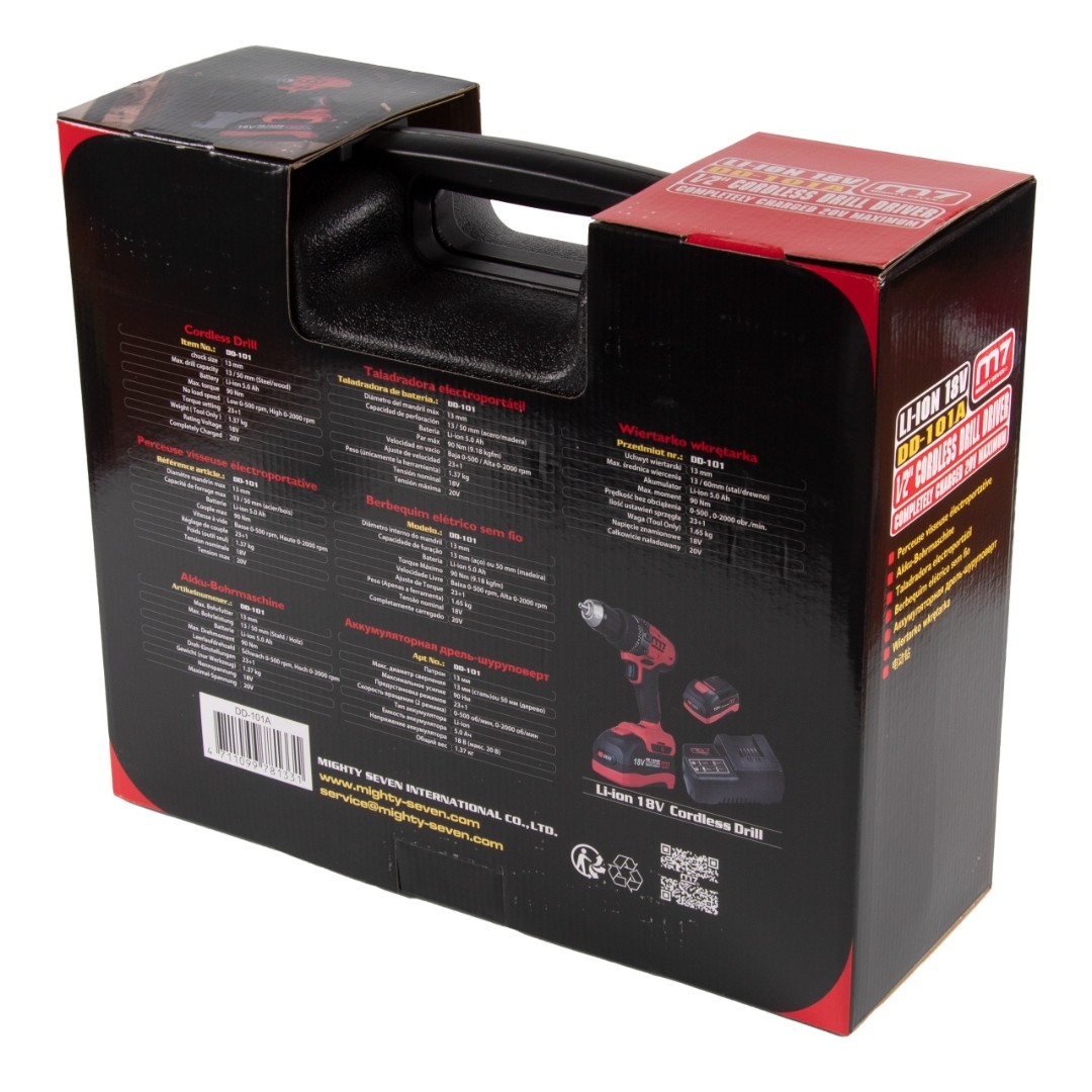 Аккумуляторная дрель-шуруповерт 18 в, импульсная, кейс mighty seven dd-101a