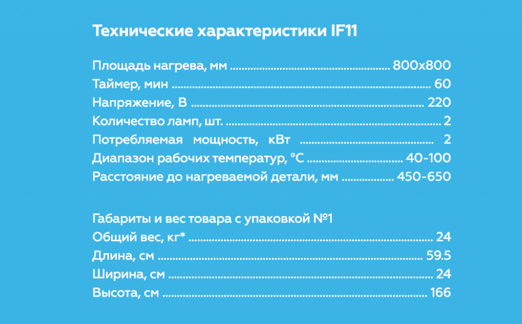 - Возможность направленного нагрева с разных позиций и углов за счет двух одноламповых излучателей.