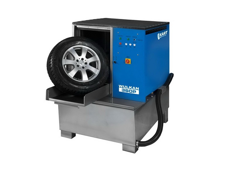 Мойка для колес легковых, полугрузовых и вездеходных автомобилей, а также внедорожников SUV шириной до 360 мм, со всеми видами дисков и шин с пневматической установкой стабилизации колеса и с подогревом воды
