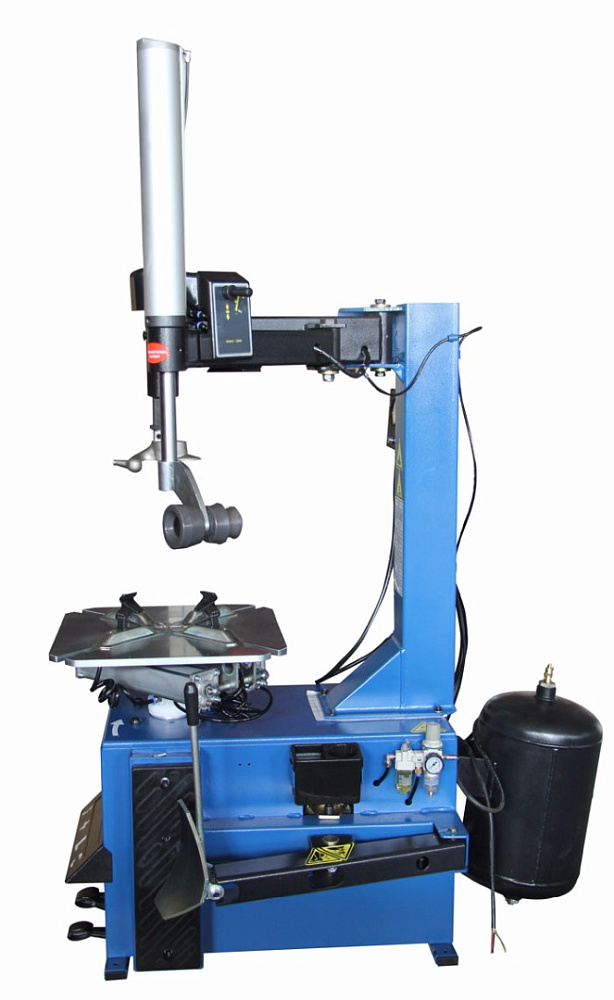 Данная модель оборудована ресивером и модулем взрывной накачки для удобства посадки бескамерных шин на диск. А также правой рукой для облегчения операции захвата колеса и регулирования нажима во время монтажа и демонтажа шин.
