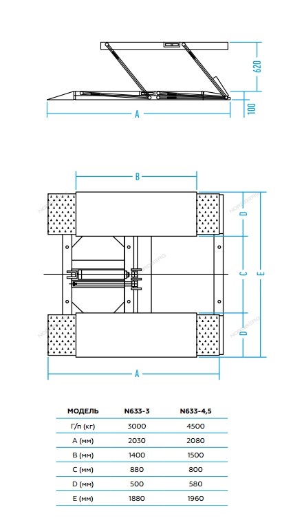 Ножничный подъемник г/п 3 т. NORDBERG N633-3B_380 характеристики