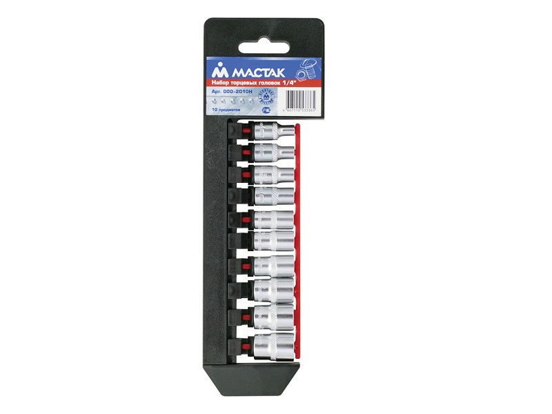 Набор торцевых головок 1/4", 4-13 мм, 10 предметов МАСТАК 000-2010H